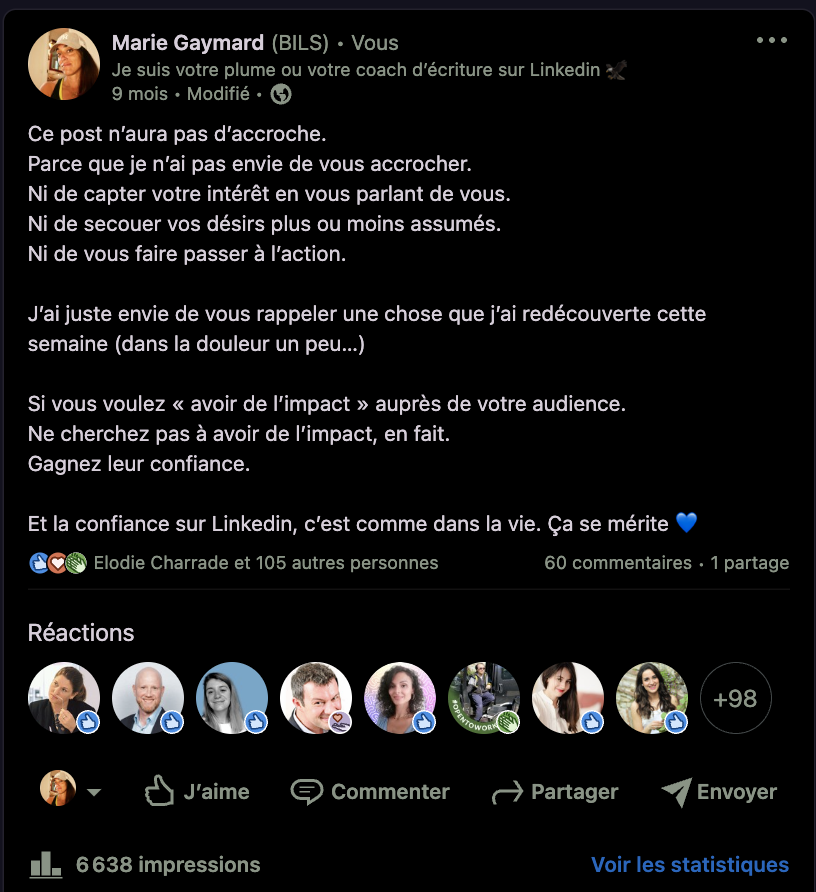 Et la confiance sur Linkedin, c’est comme dans la vie. Ça se mérite 💙