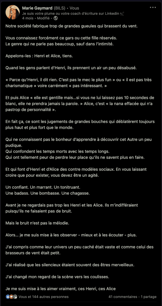 J’ai réalisé que les silencieux étaient souvent des êtres merveilleux.